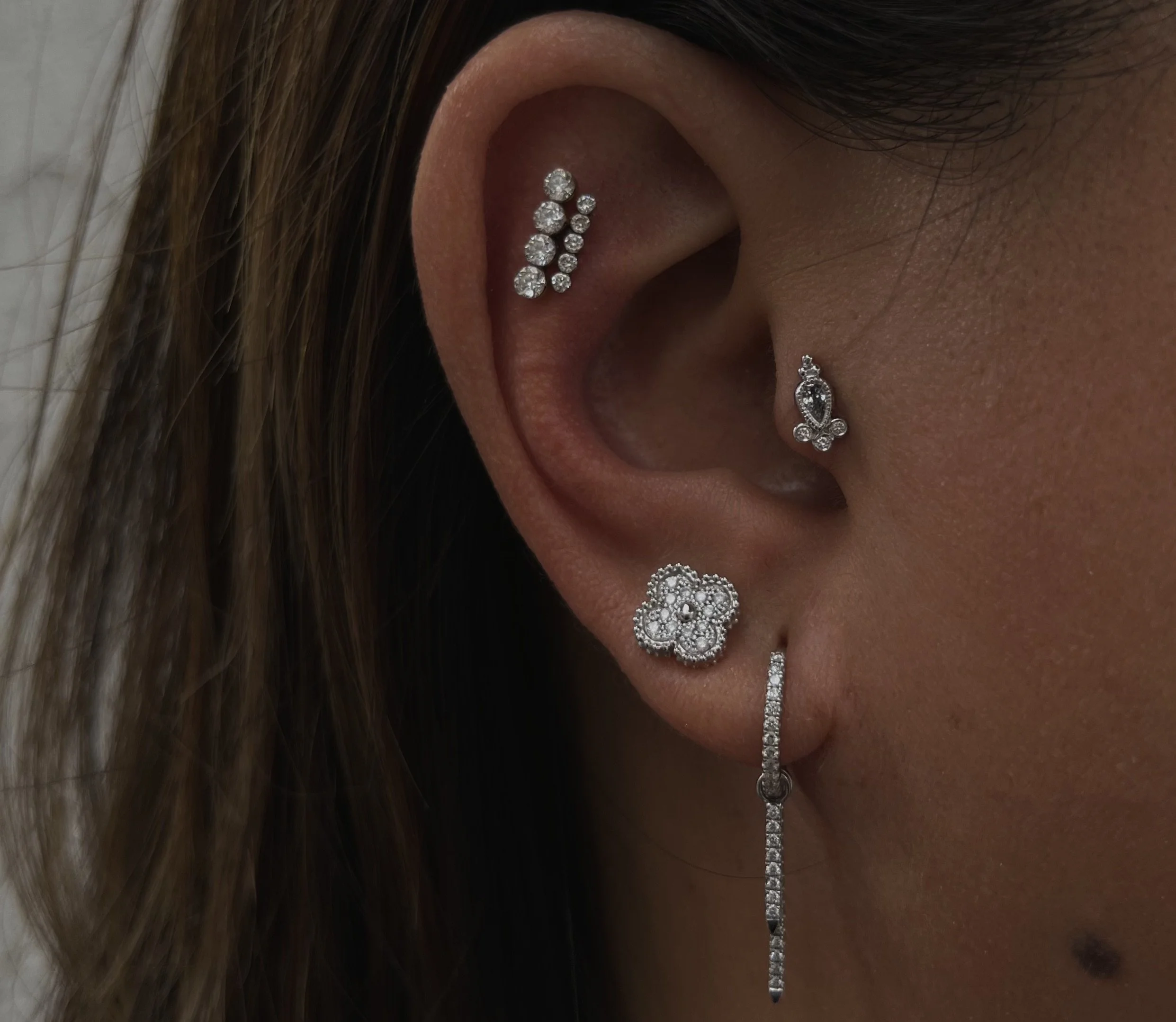 Personalized ear styling and fine jewelry placement designed for balance and flow.